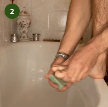 2. Faites mousser le savon et massez les zones concernées pendant 30 secondes.